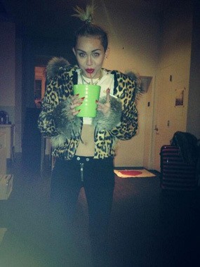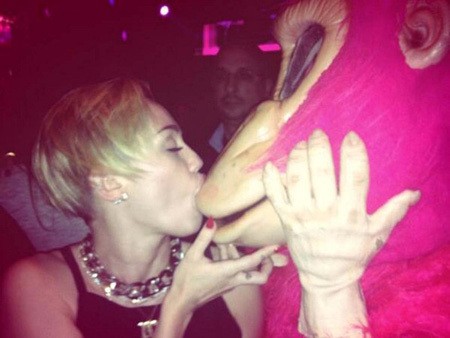 Di foto itu, Miley terlihat mencium bibir badut berbentuk monyet.