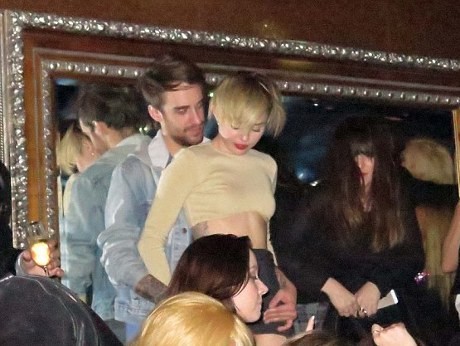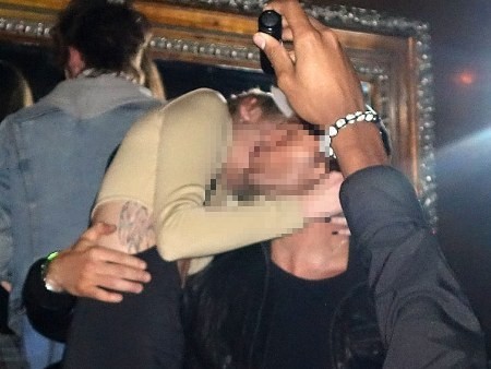 Pada sebuah foto terlihat, Miley dan Chayne yang tengah berdiri di atas meja saling berpelukan, Chayne juga terlihat memeluk pinggang Miley dari belakang.