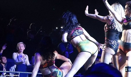 Pada acara yang sama pula, Miley diberitakan mencium seorang penari perempuan di konser ini.