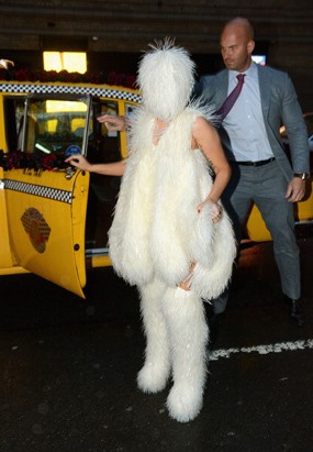 Di hari kedua konsernya yang digelar di Roseland Ballroom, New York, Gaga terlihat mengenakan kostum bulu berwarna putih saat tiba di lokasi konsernya itu. Uniknya, kostum tersebut menutupi wajah Gaga.