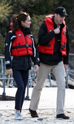 Kala itu, ibu dari Pangeran George tersebut nampak menggunakan sebuah kaos bergaris yang ditutupi oleh blazer berwarna biru tua. Sebuah jeans dan sepatu wedges berwarna senada melengkapi penampilan sporty Kate saat itu.