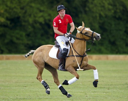 Pangeran Harry terlihat asyik bermain Polo di Tidwoth Polo Club, Tidworth, Inggris. Harry bermain bersama para tentara. (foto: Getty)