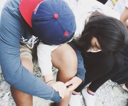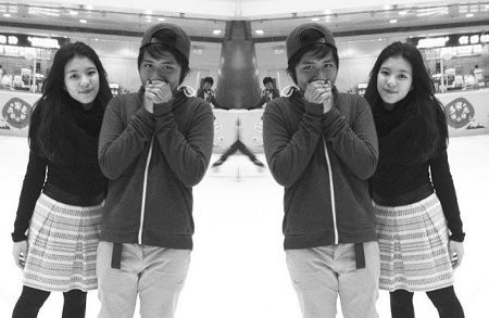 Shaloom dan pacarnya tampak mesra di beberapa pose. Kekasih Shaloom tampak selalu mengenakan topi.