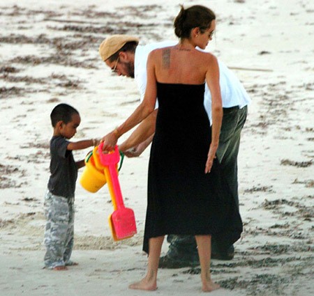 Dalam foto itu, Brad dan Angelina berpose bersama beberapa anak kecil seperti sebuah keluarga.