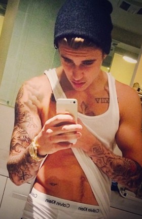 Tak mau ketinggalan, Justin Bieber juga pernah mengunggah foto dirinya bercermin sambil berpakaian dalam.