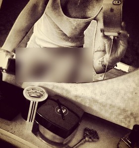 Selfie Lindsay Lohan dengan underwear-nya. Namun artis kontroversial itu masih mengenakan tank top.