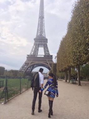 "From Paris with love... Thank u sayang," tulisnya.