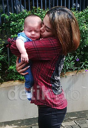 Ciuman Nikita mendarat di wajah Azka yang sedang tertidur di pangkuan kerabatnya. Tidak sekali, istri Sajad Ukra itu mencium bayinya berkali-kali sampai sang buah hati terbangun.