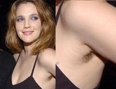 Aktris Drew Berrymore pernah kepergok punya bulu ketiak cukup lebat. Menggunakan tanktop, ia tampaknya tak sadar difoto lantaran rambut-rambut yang tumbuh di siku lengan dan tubuh itu.