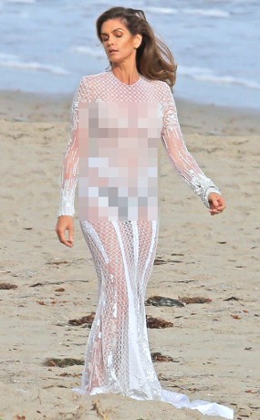 Cindy terlihat melakukan pemotretan pada Minggu (22/3) lalu di daerah pantai Malibu. Tubuh sang model masih terlihat indah dengan balutan gaun transparan yang mengekspos hampir keseluruhan bagian tubuhnya.