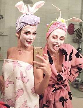 Foto tersebut diambil oleh keduanya di dalam kamar mandi, dengan wajah yang masih dipenuhi dengan produk kecantikan. "Eastaaaaa Hip Hoppy Happy Easter!!! #TurntEaster," tulis Miley pada caption foto.