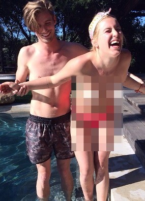 Pada foto tersebut, Scout terlihat beropose di pinggir kolam renang ersama seorang pria yang merentangkan salah satu tangan Scout.