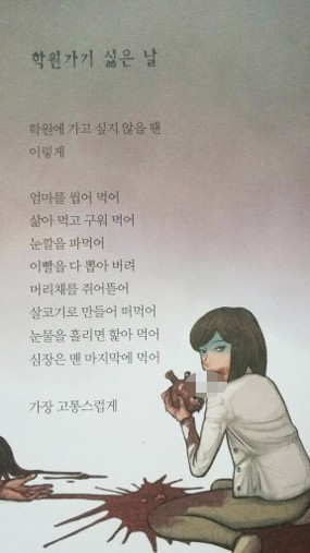 Penerbit Kim Suk Book menerbitkan buku kumpulan puisinya pada 30 Maret lalu. Salah satu puisi yang ditulis gadis kecil bernama Lee itu, berjudul 'On a Day You Don't Want to Go to Hakwon', isinya sungguh mengejutkan.