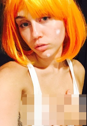 Miley Cyrus adalah salah satu selebriti yang mendukung kampanye #FreeTheNipple, sehingga jangan heran bila mantan kekasih Patrick Schwarzenegger tersebut kerap mengunggah foto-foto yang mengekspos bagian intimnya. Mengenakan rambut palsu oranye, penyanyi berusia 22 tahun tersebut memasang tampang sensual sambil mengekspos payudaranya.
