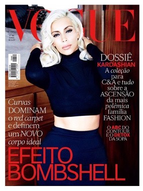 "Aku berfoto dengan rambut pirang untuk Vogue Brasil!" tulis Kim pada caption foto sampul majalah yang diunggahnya di Instagram.