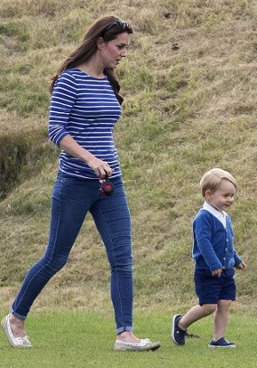 George terlihat bermain-main di rerumputan bersama sang ibunda ketika sang ayah sibuk bermain dalam pertandingan polo.
