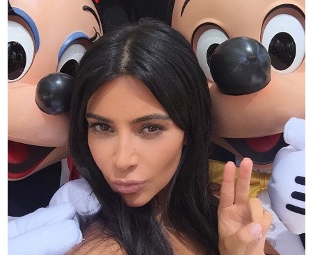Kim Kardashian Pamer Selfie Bareng Mickey dan Mini Mouse
