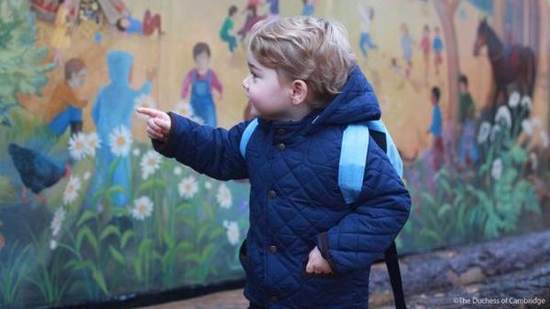 Rabu (6/1) adalah hari pertama bagi George resmi menjadi siswa taman kanak-kanak di Westacre Montessori School yang terletak di Norfolk, Inggris. Untuk hari pertamanya masuk sekolah, kakak dari Putri Charlotte tersebut tampil serba biru dengan jaket tebal dan tas punggungnya.