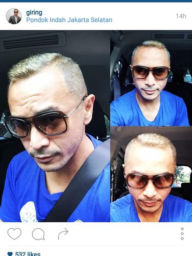 Di akun Instagram-nya, Giring mengunggah foto dirinya tengah berada di salon. Beberapa saat kemudian, ia juga memamerkan rambut barunya dengan selfie.