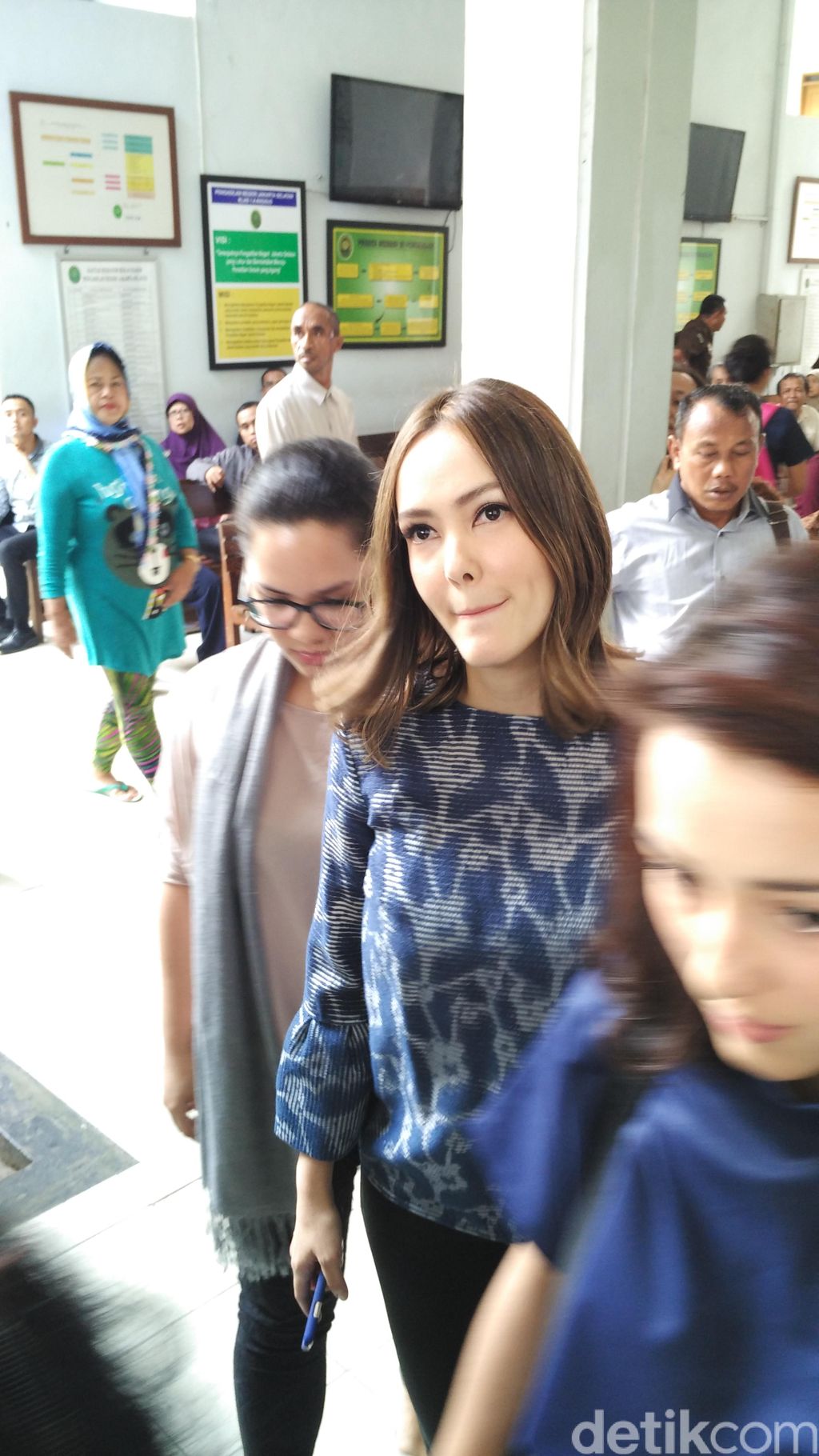 Cathy tiba pukul 10.37 WIB di PN Jaksel. Bintang film 'The Perfect House' itu langsung masuk ke ruang sidang 5.