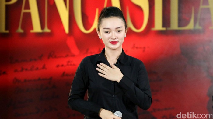Seperti saat menggelar acara santunan di kawasan Kedoya, Jakarta Barat, Rabu (6/4/2016). Zaskia membacakan Pancasila di depan anak-anak yatim piatu.