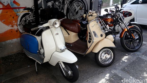Tepat di depan teras rumah motor-motor koleksi milik Omesh. Ada jenis vespa sampai motor gede sekelas Harley Davidson bertengger gagah. Bagian depan rumahnya ini memang dijadikan bengkel mini oleh dirinya.