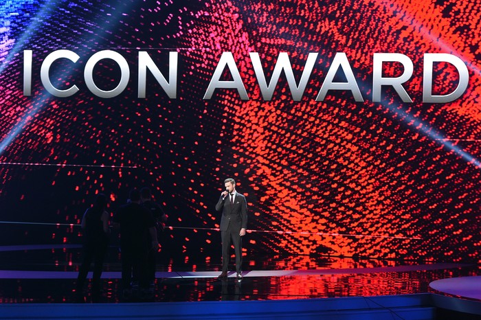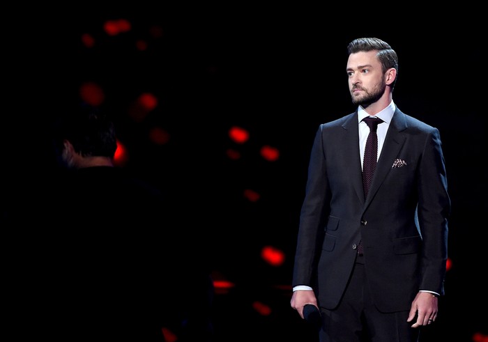 Pelantun 'Can't Stop The Feeling' itu hadir untuk mempersembahkan penghargaan bagi atlet yang telah pensiun, yaitu Kobe Bryant. Kevin Winter/Getty Images/detikFoto.