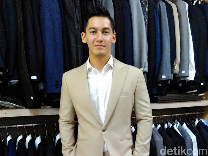 Ada dua setel baju yang akan ia pakai untuk pemberkatan dan resepsi pernikahannya. Samuel mencoba salah satu setelan baju yang akan ia pakai pada resepsi pernikahan nanti. Terlihat satu set pakaian berwarna krem dari atas hingga ke bawah.