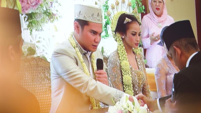 "Saya terima nikahnya Jelita Septriasa binti Sagitta Ahimsha dengan mas kawin tersebut dibayar tunai," ucap Vicky lewat satu tarikan nafas.