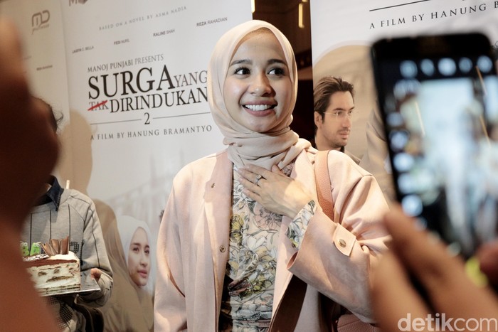Jakarta - Laudya Cynthia Bella tampak happy saat ditemui di acara nobar 'SYTD 2'. Ia terlihat asik mengabadikan momen dengan ponselnya tersebut.
