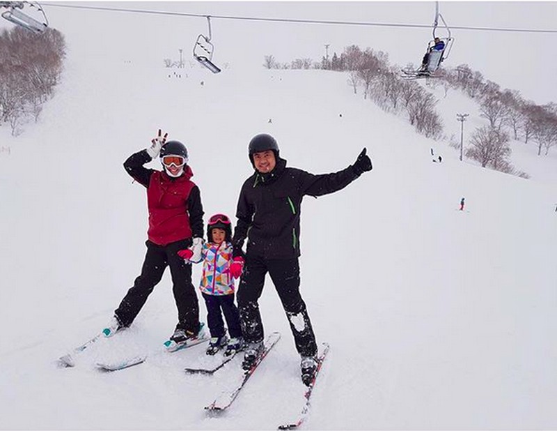 Ayu Dewi bersama suami dan putrinya menikmati salju sambil bermain ski di Nook Annupuri (instagram Ayu Dewi)