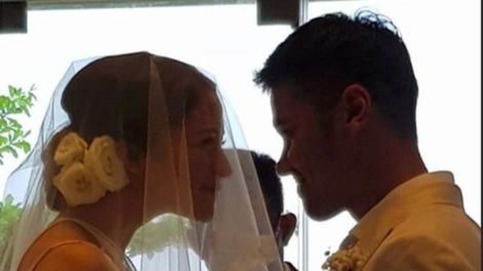 Tamu undangan yang datang terlihat memberi aba-aba untuk pasangan yang baru saja menikah itu untuk berciuman.
