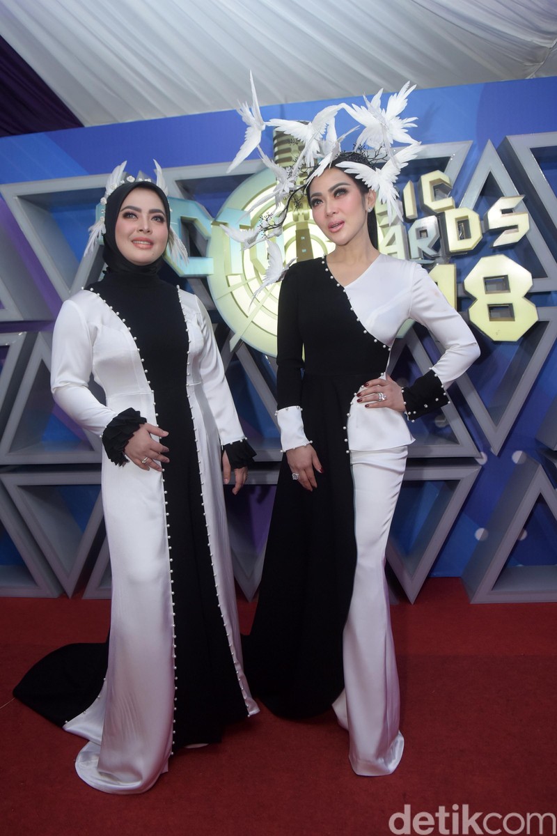Untuk kesekian kalinya gaya Syahrini selalu membuat fans berdecak kagum. Bersama adiknya Aisyahrani, keduanya tampil mengenakan headpiece burung. Foto: Noel/ detikHOT