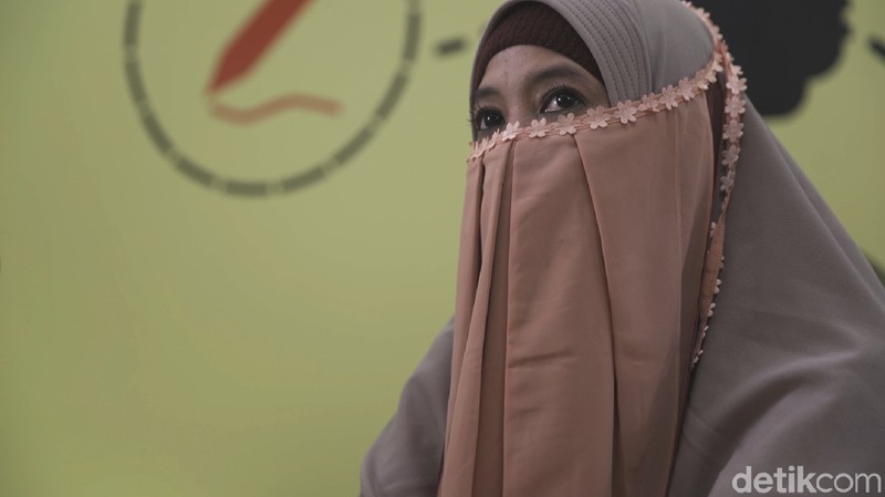 Kali ini penampilan Peggy berubah ia semakin mantap untuk berhijrah dan memakai niqab. Namanya pun kini berubah menjadi Khadijah SS. Foto: Desi Puspasari/detikHOT
