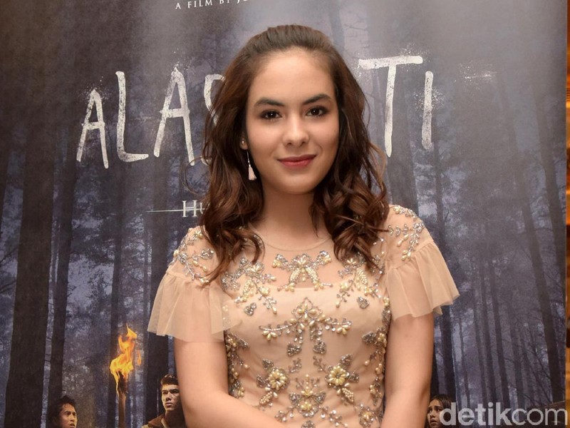 Stefhanie Zamora tampil mengenakan dress semi-formal saat tampil mempromosikan film terbarunya belum lama ini. Penampilannya itu membuatnya terlihat dewasa. Foto: (Noel/detikhot)