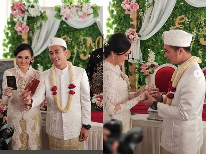 Di foto tersebut terlihat Eza Gionino dan Meiza Aulia memamerkan bukun nikahnya. Prosesi pasang cincin juga terlihat di foto yang sama.