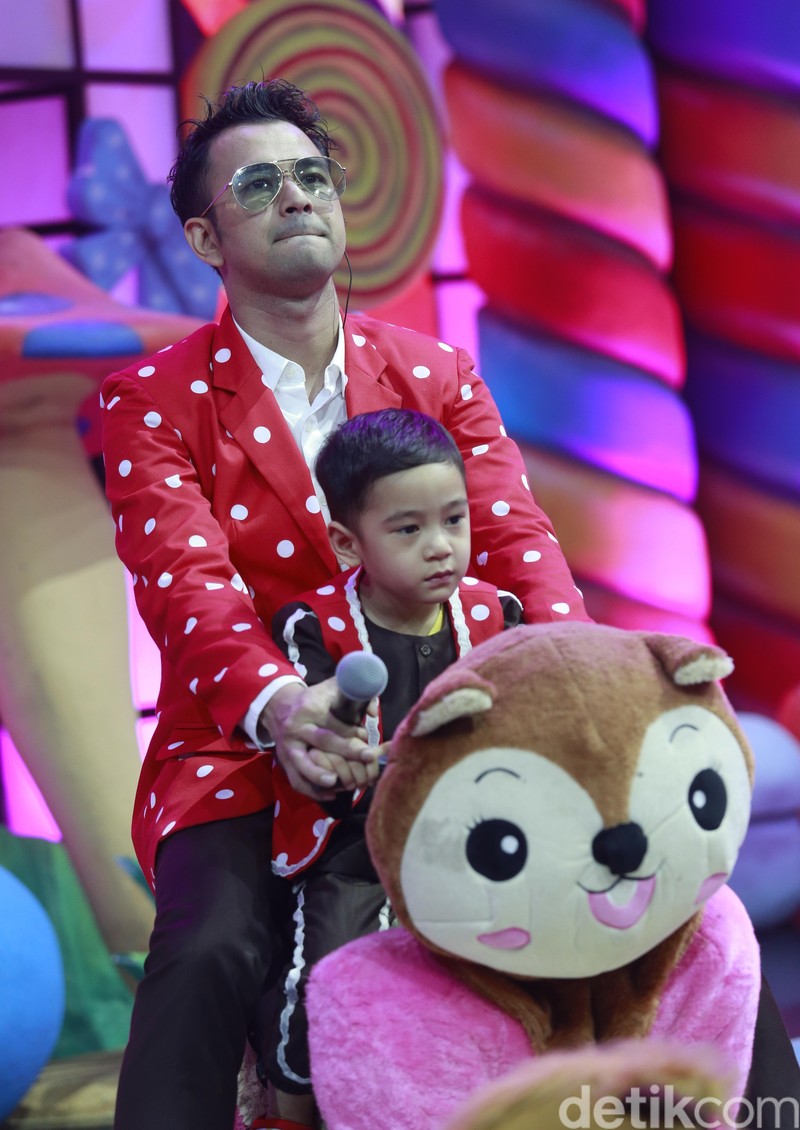 Tak sendiri tampil menggemaskan, sang suami Raffi dan Rafathar sang putra juga tampil mengenakan busana senada. Foto: (Palevi/detikhot)