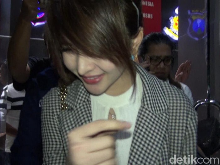 Aldira datang sendirian tanpa didampingi kuasa hukum dan pihak keluarganya. Mengenakan baju putih berpadu dengan blazer kotak-kotak hitam, Aldira menjalani pemeriksaan selama 4 jam.