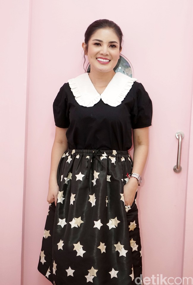 "Bayar aja dulu bulanan anak," kata Nindy Ayunda sambil tertawa, saat ditemui di Blok M, Jakarta Selatan, Selasa (8/6/2021).