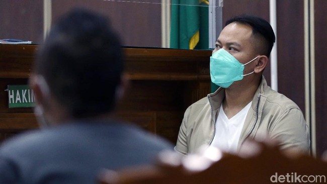Sidang digelar di ruang 2 dengan keadaan tertutup dan hanya beberapa media yang berada di sana. Setelah menghabiskan waktu kurang-lebih 15 menit, Vicky Prasetyo keluar dari ruang sidang.
