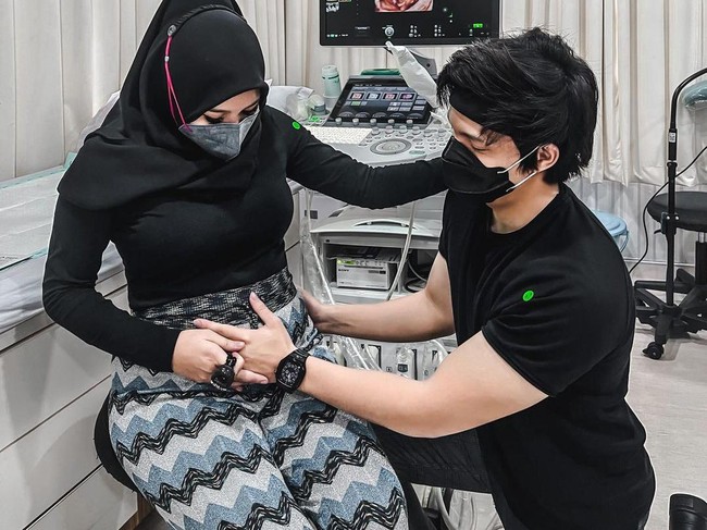 Dalam unggahan yang lainnya, Atta Halilintar memperlihatkan foto sedang memegang perut Aurel Hermansyah di ruang USG. Keduanya tampak serasi dengan pakaian yang dikenakan.