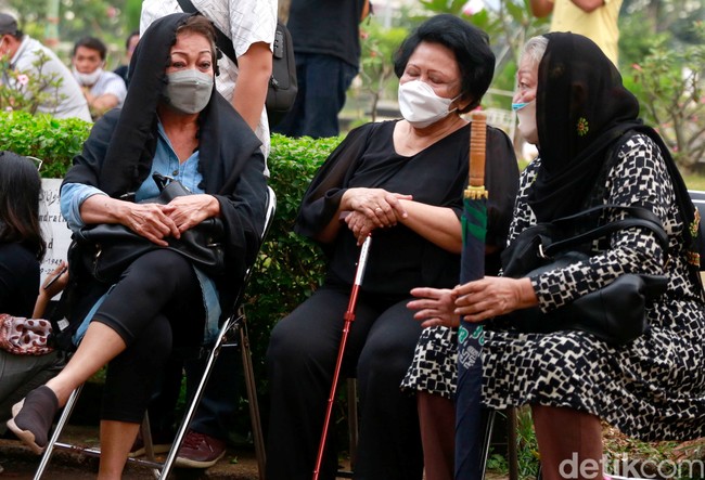 Keluarga hingga mantan istri Koes Hendratmo ikut mengantar almarhum ke tempat peristirahatan terakhir. Foto: Palevi