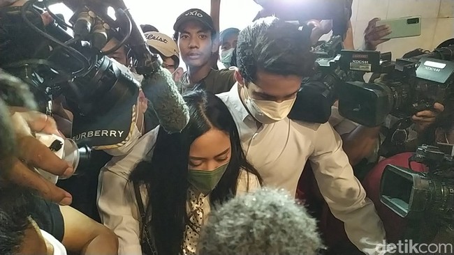 Jakarta - Rachel Vennya dan Salim Nauderer penuhi panggilan Polda Metro Jaya. Ia tertunduk.