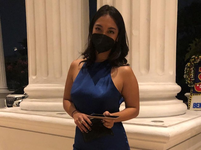 Pesona Anindita Hidayat dengan Mini Dress Biru