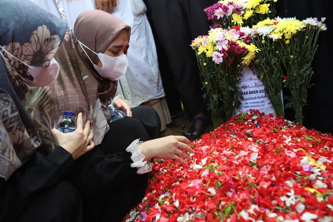 Nikah 5 Bulan Lalu, Tangis Istri Pecah di Depan Makam Ameer Azzikra