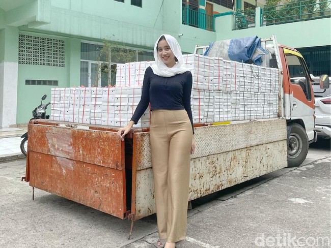 Diva Andzani menyewa sebuah truk untuk membawa 2.000 boks makanan. Putri Pariwisata Nusantara 2019 itu bermaksud berbagi rezeki pada banyak orang dalam waktu bersamaan di hari Jumat yang penuh berkah.
