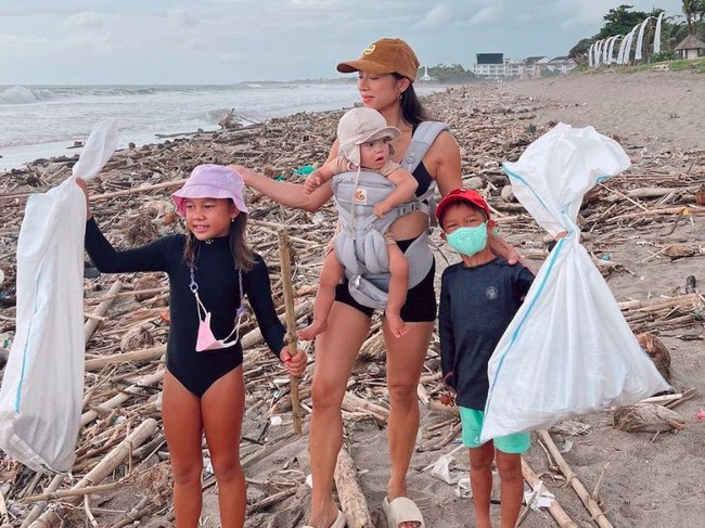 Patut Dicontoh! 7 Potret Jennifer Bachdim Bersihkan Pantai Bali Bareng Anak