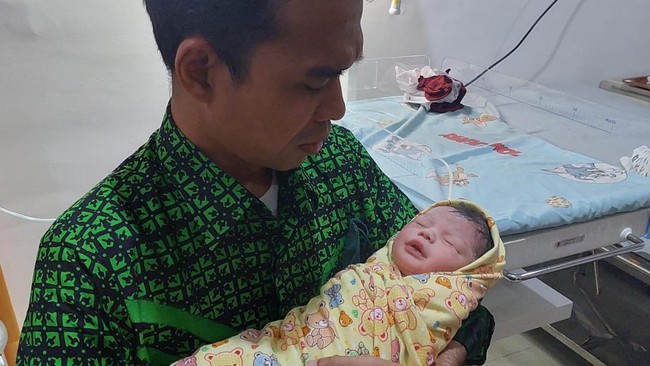 Pada foto yang diunggah itu, Ustaz Abdul Somad terlihat menggendong sang anak. Ia tampak masih berada di rumah sakit.