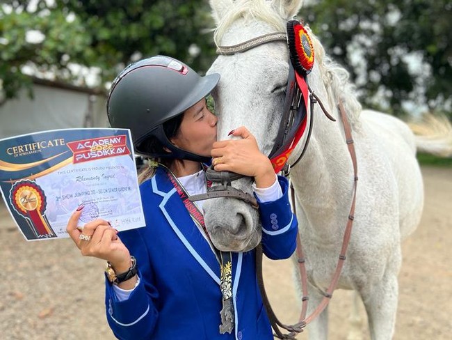 Rhemanty mengikuti perlombaan kuda di Academy Pusdikkav Padalarang, Jawa Barat, sejak kemarin. Ia lalu berhasil masuk final dan tanding hari ini, Sabtu (26/3/2022).