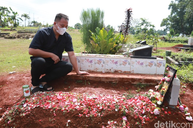 Jakarta - Vicky Prasetyo terlihat menyambangi makam mantan mertuanya, Een Wardhania. Een merupakan ibunda Kalina Oktarani yang meninggal pada Minggu (27/3/2022).